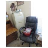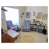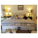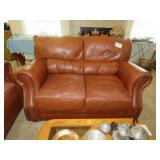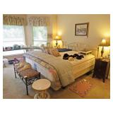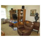 NICE SALE! Leather furniture for your den. Blonde Wood & glass dining table with 6 chairs - matching China cabinet too! Light wood dinette with 4 chairs. Light wood media cabinet. King size bed with decadent mattress. Cedar chest. Refrigerator with freezer on top. Washer & dryer.