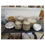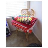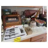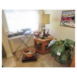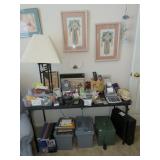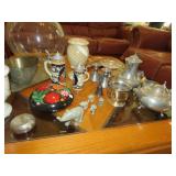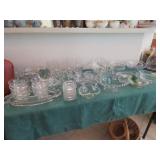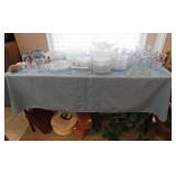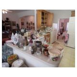 Quilts galore! Wall art. American Indian/Southwest themed decorations. Large collection Candlewick glass. Beautiful decorative glass and vintage knickknacks. Cookware, Crystal stemware, LOTS of China dinnerware in vintage patterns. Silverplate flatware. Stamps, paper, Craft supplies for making your own greeting cards. Like new folding wheelchair and other medical appliances.