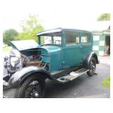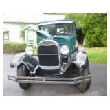 1928 FORD MODEL A, SATURN CAST IRON -SPEARS RAILWAY CAR STOVE #14-EX-COND., 1985 SUZUKI MC –MOPED LIKE NEW COND., 1975 KAWASKI MC 7236 APPROX. MILES. TRACTOR/MOWER GOOD COND. THESE ITEMS ARE GARAGE KEPT OR IN HOME AND WERE WELL MAINTAINED.