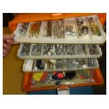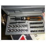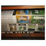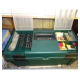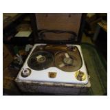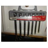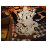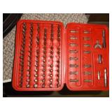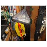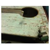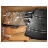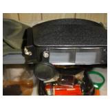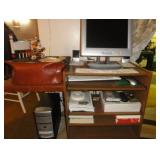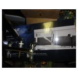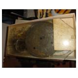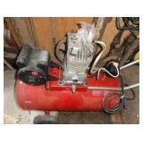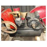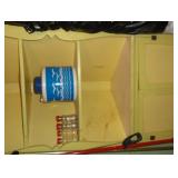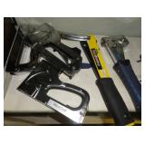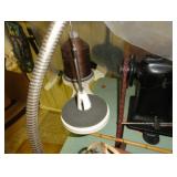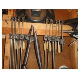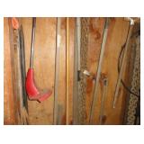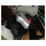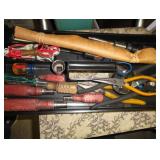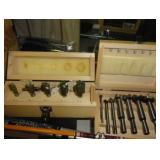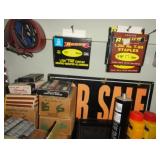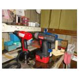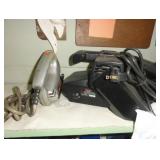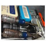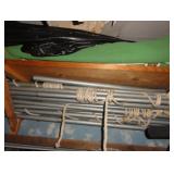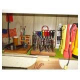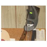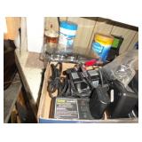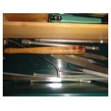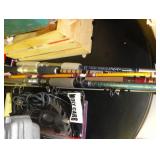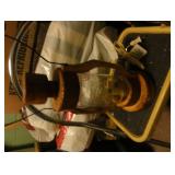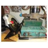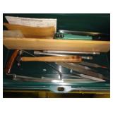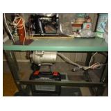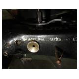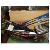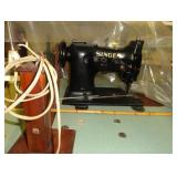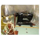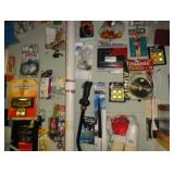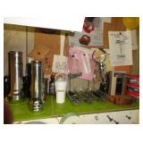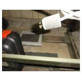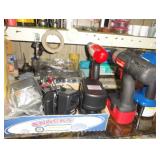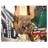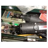 SINGER LEATHER SEWING MACHINE MOUNTED ON TABLE WITH LG. ELECTRIC MOTOR, MISC LEATHER MATERIAL & BOLT OF CAMO MATERIAL, AND THREAD. ANTIQUES: ROCKER, SNOW CREST BEAR BANK, ASSORT. CROCKS, KILEMANS MILK BOTTLE, MARBLES. TOOLS: MISC. NEW SHOP TOOLS, CRAFTSMAN WRENCHES, BATTERY OPERATED DRILLS, TOOL BOXES, SMALL VISE, LOTS OF WOOD CLAMPS, AIR TOOLS, GRINDERS, DRUMMELS, ROUTER BITS, ALL IN ONE CUTTING TOOL, STAND UTILITY LIGHT, POLISHER, SHOP VAC, CIRCULAR SAWS & BLADES, SANDERS, TOO MANY TO MENTION. FURNITURE: WOOD TABLE & CHAIRS, LIVING ROOM SET, WOOD STANDS, HUTCH WITH DROP SIDES. MISC: GIBSON GUITAR, MISC. DÉCOR. TOO MANY ITEMS, TOO NUMEROUSE TO MENTION.