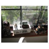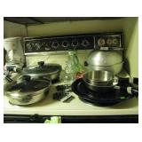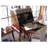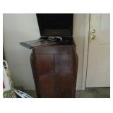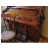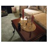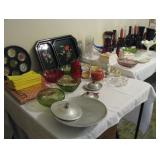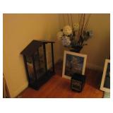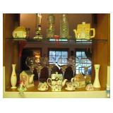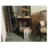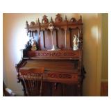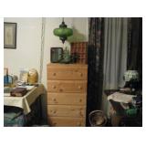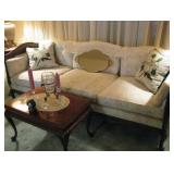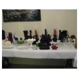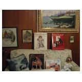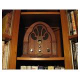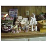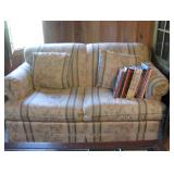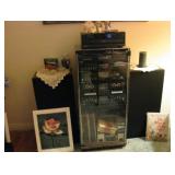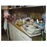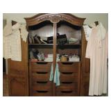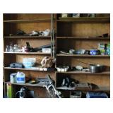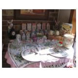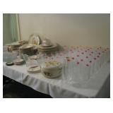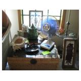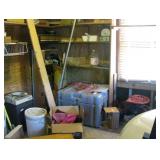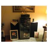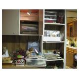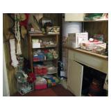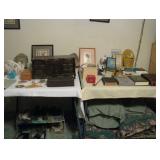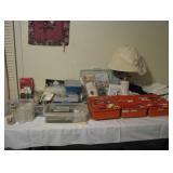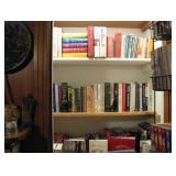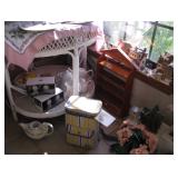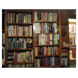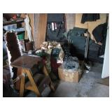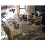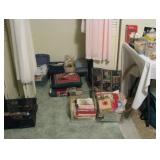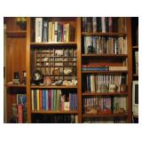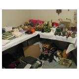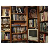 Furniture including sofa, loveseats, side chairs, coffee/end tables, wrought iron/glass table with six chairs and setee, platform rocker, occasional tables, large secretary cabinet, grandfather clock, Thomasville armoir/chest, reed pump organ, electric organ, Barrynola Victrola, wall display cabinets, book shelves, entertainment center, stereo components, glassware, china, crystal, kitchen items, cookbooks, home decor, framed art, lamps, large collection of books (a library full of books) including Louis Lamour western novels and leather-bound classics, sewing and craft items, vintage ladies clothes, Dept. 56 - Dickens and New England village items, Christmas, hand and power tools, golf cart, much more.