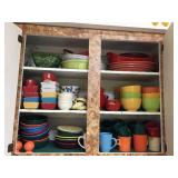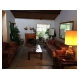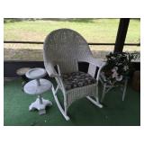 Lots of genuine wicker and rattan furniture all over the house. Living room, dining room, bedroom sets, recliner, glass top kitchen table, curio cabinet. Extensive selection of wicker and pvc porch furniture. Even a wicker bar with stools! Huge collection of nutcrackers, miniature clocks, trinket boxes. Shell display. Several Tiffany style stained glass lamps. Loads of jewelry. Kitchen has Wolfgang Puck stainless pots and pans. Complete set of Fiestaware. There is an overload of QVC kitchen items, small appliances, and giftware still in boxes. Sewing and craft supplies. Ceramic bisque pieces. Garage has tools, garden items, seasonal decor, loads of stuff. Very nice sale.