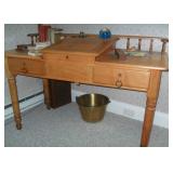 Antiques & Collectibles; Imperial #747 coffee grinder, Boot jack collection, Cherry seeder, Old wooden jewelry box, Paper dispenser, Commemorative decanters & paper weights, Holly City campaign bottles, Slaw cutters, Sad irons, Trivets, Glass washboard & others, Wall mount dry rack, Baskets, Mantle clocks, Wall clock, Butter press, Adv tins, Vintage kitchen items (many), Spongeware bowls, Nice collection of Roseville, Candle mold, Oil lamps, Large glass bottle (approx 3 ft), Cigar molds, Wooden canes, Brass bucket, Copper coal shuttle, Vintage hats, Wooden ironing board, Currier & Ives framed prints, Wooden pencil box, Misc older bottles, Household & Misc; Kenmore washer & dryer (newer), Amana refrig, Crosley flat top stove, Tappen microwave, Old desk, Drop leaf tables, Lamp stands, Small safe, Marble top dresser & wash stand, Rockers, Wash stand, Spool/jewelry floor cabinet, Spindle leg stands, Oak ding room chairs, Benches, Dry sink, Brass bed, Dressers w/ mirrors, Sewing machine, Sewing baskets, Safe/file cabinet, Blankets, Linens, Canning jars, Canners, Pressure cooker, Salt dips, Ruby glass, Brass candle sticks, Large amount of Fostoria diamond point glass, Cookbooks (many), Misc small kitchen appliances, Canister sweeper, Carpet shampooer, Air purifier, Costume jewelry, Shadow box picture frame, Bath towels, Pfaltgraff service for 4 dish set, Misc yard tools, Small air compressor, 20 alum ext ladder, 3HP snowblower, Yard spreader, Mini tiller, Folding picnic table, Wooden porch swing, Floor jack, Sockets, Screwdrivers, Wrenches, Lots of hardware,