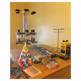 Temper-pedicure bed Yellow Checker Cab Kinky Friedman NASCAR Mark Martin Electronics Sony Brother Printer HP Printer Rustic Furniture Blu-Ray Baseball caps Halloween costumes Military items Bar stools Shiner signs Deer skull Bar accessories Sirius radio Bar from the Longhorn Saloon Signed guitar from the Longhorn Saloon Memorabilia from White Elephant Bar LG Flat Screen TV Starbucks coffee mugs Yeti cup Corelle dishes Pfaltzgraff dishes Sunbeam mixer Pyrex glass bakeware Crockpots Whirlpool Washer Kenmore Dryer Shark iron Vizio Flatscreen TV Albums Books Louis L'Amour Retro chairs Magnavox stereo LeMond exercise bike Playboy magazines Ryobi tools Proto tools Garden tools Dodge Rims Coolers Drillpress Dyson vacuum Bissell carpet cleaner Toro blower Delta saw Shopvac Weed-eater Jack Zippo lighters Knives Grill Outside furniture Texas Motor Speedway items Budweiser Miller Lite Vintage lamps Futons