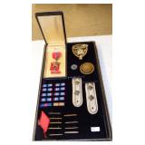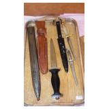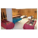 TAXIDERMY: COYOTE AND RED FOX PELTS, 8 POINT ANTLERS ON PLAQUE WITH HOOVES RACK. AIR RIFLES: CROSMAN CS1K77A PHANTOM WITH SCOPE, DAISY INCLUDING (3) "RED RYDER" No.111 MODEL 40 CARBINE, No. 111 PLASTIC STOCK, (2) No. 25, (2) No. 107 "BUCK JONES SPECIAL" WITH SUNDIAL COMPASS, No.86/70, No. 98 EAGLE WITH SCOPE, No.195 MODEL 36 "BUZZ BARTON SPECIAL" AND No. 100 SINGLE SHOT, SEAR'S "TED WILLIAMS" No.799. AIR PISTOLS: CROSMAN MEDALLIST II No. 1300, HY-SCORE TARGET MODEL. RECURVE BOWS: WOOD WITH BOX OF WOOD ARROWS, WARD'S "BRUIN" AND BEAR "GRIZZLY". COMPOUND BOWS: PSC "LIGHTNING FLITE II, DARTON, U.S.A. AND BEAR "HUNTER". SCOPES INCLUDING BAUSCH & LOMB No.78-1600 15-60x60mm ZOOM SPOTTING WITH TRIPOD, PENTAX XCF 12x50 BINOCULARS. (6) PAIR SNOWSHOES INCLUDING HAVLICK, MAYFIELD, NY, BEAR TRAP MARKED "L.R.", PACKBASKET, MEC 12 GA. #650 PROGRESSIVE RELOADER WITH CASE CONDITIONER AND AUTOMATIC PRIME FEEDER. GUN MAGAZINES: (4) MARLIN 22 MAG., (3) RUGER 10/22 LR WITH TRIPLE COUPLER.. SOFT AND HARD GUN CASES, HUNTING CLOTHING, LOHMAN'S GAME CALLER WITH TAPES AND ACCESSORIES. 14 SLOT GUN DISPLAY RACK, WOOD TABLE TOP SADDLE DISPLAY. AMMO INCLUDING .22LR, .22 WIN.MAG., 9mm LUGER, .44 SPECIAL, .40 S&W, 30/40 KRAG, .32 AUTO, 12 GA., (375) 12 GA. No.6 RELOADS, .45 ACP, 7.62x39mm, 7.62x59mm. 1950's COLLECTABLE .22 SHORTS (500-WESTERN XPERT GREASED WITH MASTER BOX, 500-FEDERAL MONARK LEAD LUBRICATED WITH MASTER CARTON AND 400-IMPERIAL ELEY PISTOL MATCH WITH MASTER CARTON). (3) TACKLE BOXES FULL, LURES INCLUDING HEDDON "00" 1906 AND ZIG-WAG, JR., CREEK CHUB WEED BUG 1927 AND JOINTED HUSKIE PIKIE WITH BOX, J.T. BUEL No.1 AND No.3 ARROWHEAD SPINNERS, ASSORTED FISHING TACKLE. RODS INCLUDING ORVIS (UN-MARKED) 2 PC. 8' IMPREGNATED KIT ROD, ORVIS 2 PC. 8 1/2' GRAPHITE "WESTERN", ETC.. REELS INCLUDING B.F. MEEK & SONS No.34, FENWICK BLACK HAWK XL-IV WITH BOX, ETC... (2) LONG HANDLED FISH GRABBERS, WOOD TROUT NET, CANOE PADDLE, (2) PAIR OARS, CANOE SEAT BACK, (24) POLAR TIP-UPS. SWORDS WITH SCABBARDS: CHINESE MILITARY, INDIA TALWAR (DECORATIVE), PERSIAN DRAGOON. GERMAN ARTILLERY OFFICERS (NO SCABBARD). BAYONETS WITH SCABBARDS: SPANISH 1893, CHILEAN 1895, INDIA 1907 SMLE MK*2 R.F.I., AUSTRIAN 1907, US MODEL 1942 UFH, COLT M-7, SWISS 1918, POLISH 6H4, USM-4, (2) BRITISH No.4 MKII SPIKE. BAYONET NO SCABBARD: GERMAN VZ24, AUSTRIAN 1854 SOCKET (FOR LORENZ RIFLE), US 1873 SOCKET, RUSSIAN 1891 SOCKET (1st PATTERN), RUSSIAN 1891/30 SOCKET (2nd PATTERN), CIVIL WAR ERA BRAZILIAN MARKED S&K WITH ANCHOR AND DC. SIDE KNIVES WITH SHEATHS: PAL RH36, CATTARAUGUS WWII, CAMILLUS 2-11976 US PILOT. POCKET KNIVES INCLUDING QUEEN CUTLERY 3L (STAG) WITH BOX. CASE-XX HATCHET. GERMAN MILITARY: NAZI PHOTOS (INCLUDING 19 REAL PHOTO CONCENTRATION CAMP HORRORS), POSTCARDS, INSIGNIA, WWII IMPERIAL PILOTS BADGE, (3) NAZI LABOR STICK PINS, WWII KYFFHAUSER MERIT CROSS, VETERANS MEDALS, GOTT MIT UNS ARMY BELT BUCKLE, RAD BELT WITH BUCKLE, THIRD REICH DEUTSCHES KREUS 1941 GERMAN CROSS (IN GOLD), 13th SS HANDSCHAR COLLAR TAB WITH PHOTO, 13th SS HANDSCHAR FEZ (BOTH SKULL & EAGLE MARKED RZM M1/24), SS SIGNAL OFFICERS CAP, FREIBERGER MARINE SEXTANT WITH CASE. US MILITARY: INSIGNIA, PATCHES,ETC.., AUTOGRAPHED PHOTO CREW OF ENOLA GAY STRIKE PLANE ON HIROSHIMA MISSION (THOMAS FEREBEE, PAUL TIBBETTS & THEODORE "DUTCH" VAN KIRK) PHOTO ALBUM SOLOMON ISLANDS 7/1943 THRU 6/1945, RFX55 "LEMON" GRENADE WITH TRIP WIRE BOOBY TRAP FUSE, NAVY 10th MOUNTAIN DIVISION TUNIC, NAVY AIRCRAFT TORPEDO CAMERA TYPE I IN CASE, WWII NAVY 6x30 FIELD GLASSES, 30" BRASS TELESCOPE WITH MOUNTS. OTHER MILITARY: WWII TURKISH PILOT BADGE, ITALIAN DIPLOMATIC HAT, (10) POLISH MILITARY BUTTONS, VINTAGE BRITISH AIRCRAFT PHOTOS, BRITISH WWII PICK AXE SHOVEL WITH CASE (DATED 1943). COLLECTION OF HEADGEAR: (4) VISOR CAPS (EAST GERMAN OFFICERS, CANADIAN 22nd REGIMENT, BULGARIAN NAVY, CANADIAN ROYAL NAVY. COMBAT HELMETS INCLUDING FRENCH MM35, SWISS M71, POLISH MILITARY, ETC.. OTHER ITEMS OF INTEREST: FRAMED GROUPING OF CIVIL WAR ARTIFACTS (FORT WALKER, FORT MOULTRIE AND FORT SUMTER), (2) MOVIE PROP LEVER ACTION RIFLES, PARRIS MFG. CO. CADET TRAINING RIFLE, 6 FOOT FLESHING POLE, 62x20x5 1/2 TIGER MAPLE GLASS TOP SHOWCASE, AND MUCH, MUCH MORE....