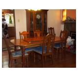 Dining Room Table, 6 Chairs, China Hutch, and Buffet.
