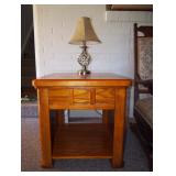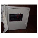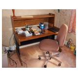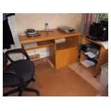 Office Desk, Chair, Rolling Cart, Plastic on Floor. (no contents)