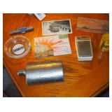 Vintage Collectibles. Postcards, Ashtray, Flask.