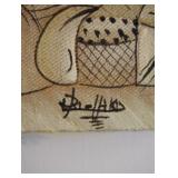 Painting, of Women with Baskets, Ink on Fabric, Signed.