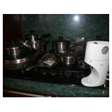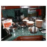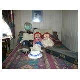 Collection of Jack Daniels for you men. Decanter's, pitchers, glasses, stir sticks, playing cards, coasters, etc Retro new Henry and Miller NYC insulated high ball glasses Budwelser glasses, hanging clock, Clydesdale wagon Other vintage decorative bottles, lamps, art work, bar stools, benches, small tables, everything you need to set up a nice entertainment room. Tools, a diggers delight in garage and second basement area LLadro's some retired, Lenox, Buehm, Hummel's, g.Armandi Sterling pieces, silver plate Italian crystal and silver plate pitcher Asian occupied Japan tea set Art work Crystal Victorian mushroom style lamp China sets, Haviland Limoges France Anniversary plates Sterling china Liverpool Waldorf Antornia plates 1931-1981 Spaghetti string rubberized glasses and pitcher 1950's Antique over 100 years old Haviland Limoges from France china China sets Evesham England Independence Ironstone Castleton His Majesty china set Johnson Kitchen is packed Cooper pieces Craft items, ton's of ribbon, seasonal Electronic's, record albulm's, 45's some with sleeve's, cd's, vhs,cassette's Speaker's OHM' Duel record player Singer portable sewing machine, with accessories Electric typewriter Ronson electric shoe polisher, shoe shine box, brushes, etc Wooden storage trunks in great shape, large and small Fireplace accessories Camera's, projector,rail's, Bell and Howell auto load Doll's from the 50's Barbie and Ken, Midge, clothes and accessories, case Women's hats and gloves Two wedding gowns Women's shoes size 8 1/2- 9 Women's and men's clothes Raggedy Ann and Andy Maple day bed, night stand Dinning room table drop leaf sides, side board Two small corner curio cabinets Two matching side chairs One wing chair Beautiful hand carved accent table Cocktail table Accent table top sides open up Three bed room sets Cherry full bed with headboard, and foot board' chester draws, double dresser with mirror, vanity, two night stnds Full bed with head board, corner desk, two dressers with hutch, chester draws, one night stand White provincial two twin beds head board and foot boards, night stands, vanity with mirror, single size dresser with mirror, dresser with book shelves Rocking chairs Seasonal, linens, art work, lamps, globes Antique news paper articles from 1931 Coolers Wine rakes Violoin New glass ware There are new items in boxes Pole lamps There's to much to list