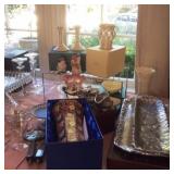 ANTIQUES · Antique dressing table · Elegant Dark Wood secretary desk in great condition · Tall Wood chest also in great condition · Ridgeway Tempus Fugit Grandfather Clock · 2 Wall Side Table · Antique buffet with great storage · Antique wood candle mold and dishes · 1935 Johnston Lifetime can opener in box · Antique tin small box collection (Bullion, Wintergreen Mints, Edgeworth Plug Slice · Antique wood side chairs FURNITURE · Dark wood round table with extension to make an oval table (NEW) · 4 Upholstered no arm chairs in black and beige fabric (NEW) · 2 upholstery arm chairs (NEW) · Queen Iron bed, 4 poster · Black and white wood dresser and matching desk · Night Chests, 3 styles and 6 pieces · Upholstered comfy chair · Small wood Buffett · 2 matching plush chairs, in Rose ACCESSORIES · Beautiful, like new, Molyneaux grandfather clock in dark wood · Lamps of all kinds, table lamps, floor lamps · 4 Flat Screen TV’s 26” – 46” · Area Rugs · 2 Needle point wood foot stools · 2 Smaller round dark wood tables · Framed Art · Framed Mirror JEWELRY · Earrings, pierced and clip · Bracelets · Rings · Vintage · Lanyards · Jade · Silver · Gold ART AND COLLECTABLES · Joanna Mersereau Original painting of the Mission Inn also Magnets · Mission Inn Photo framed, Golden Rayas Alter book, The Organ of the Mission Inn · Historical Mission In artifacts: Handbook of Mount Rubidoux · Mission Inn Docent program training Information, Living with Art at Mission Inn · Frank Miller of Mission Inn by Zona Gale, Book, Franciscana-Mission inn · Mission Inn Song book copy, Picturesque Riverside, Easter service 1979 · Riverside book of facts 1945, Dolls and Animals of the World, Mission Inn · 2 Perfect Day sheet music and words (From Mission Inn) · Handbook of Mission INN, The bells and crosses of Mission Inn · The story of Mount Rubidoux Book · Lladro figures · Walter Joan Walsh Anglund collector plates · Antique tin small box collection (Bullion, Wintergreen Mints, Edgeworth Plug Slice · Framed Art · Used Postage Stamps · Venice oil ”Dinner in Venice” by Viktorshvaiko · 1935 Babe Ruth Quaker Oats Metal Pin · Index (Book) of Victor records · Vintage Victor records CHINA & SILVER · Roseville Pottery · Fenton Glassware · Cut Glass · Depression Glass · Lenox · Arthur Court Silver · Pfaltzgraff China · 3 sets of bone china · Chintz dishes · Cups, saucers, plates and vases · Candlewick · Waterford Crystal · Fostoria Engagement Crystal · Wedgwood · Silver Accessories PATIO · Cushioned Teak wood sofa and 2 side chairs · Matching coffee table · Wood bench · 2 small wood tables · Round wood table with 4 Rattan chairs · Barbecue (Fire Magic) - Stainless steel · Stone wall fountain POLITICAL – from Presidential campaigns · Goldwater 1964, · Nixion+Lodge · Taft Luggage Tag, · Regan and Bush Pin · Obama magnets, BOOKS · Vintage adult and children’s books · Internal Revenue Code book from 1939 · Vintage basketball books and PE books · Velazquez Dictionary, 2 volumes 1913 · 1979 Vanishing Big Bear Book · The Snow Summit Story book · Zona Gale, The Frank Miller Book CLOTHING AND ACCESSORIES · A beautiful assortment of high fashion Jackets in Suede and leather, fabrics, formal clothes & suits · A great work and evening collection Ladies clothing size 2-14 · Brands: Herman Geist, Leather Works, Wilsons Leather, Ann Taylor, INC, 2 Star Dog, Alfani, Tahari, Danna Buchman, Chico’s, Express, Be Be, Cache · Shoes & Handbags · Designer Black belt by Fahrenheit Connie Bates of New York (wide leather with silver animal) · 911 Pin, City Lights, Lunch at the Ritz, Twin Towers Pin · Vintage Glove holder, Lipstick case · NEW Stuart Weitzman size 7 Black booty shoes · Handbags by: Dooney Brooke Monogram Clutch (NEW) · Louis Vuitton Monogram wallet bag in box ( NEW · Men’s shoes size 10-12 · Men’s Hugo Boss suits 38R pants 30/32 UNUSUAL ITEMS · 6 week Body Makeover by Provida, Michael Thumond (NEW) · Alcohawk breath machine · <!--[ |