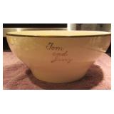 Large Tom and Jerry Punch Bowl - 4-5/8"H x 10-1/4"Dia - NO Chips, Nicks, or Cracks. Does have crazing both inside and outside. Gold Trim is strong and not faded. |