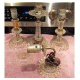Two Matching Victorian Glass Lamps - Will need to be rewired - No chips or nicks on the glass - 7"H (just the glass portion) x 4-7/8"Dia at the base; Another lamp that is wired but not tested - has a place for a globe - Victorian - 8-3/4"H from bottom to glass top portion x 4-1/4"Dia at the top - base is 4-1/2" x 4-1/2" - No chips, nicks or cracks; Wall Lamp - Not tested - 6-1/4"Depth from Wall x 4-1/4"Dia Base - NO Chips, nicks or cracks that I could see; one Glass shield similar to the larger lamp. |