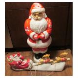 Here you have a 32"Tall Santa yard decoration along with a 11"Tall x 31" Santa with Reindeer. NO DAMAGE that I could see - Some wear on both items - see photos. |