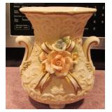 Beautiful Vase - Feels like bone china - Floral and bow has NO DAMAGE - which is very rare for this style - NO DAMAGE - no chips, nicks, cracks or crazing. Has felt on the four feet - 8"H x 6-1/2"W x 5"Depth - top is 5-1/2"W x 3-7/8"Depth. |