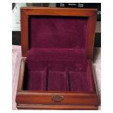 Nice wooden Jewelry Box - Velvet inside - 3-1/8"H x 7-3/4"W x 5-7/8"Depth. Several chips and nicks on the wood. |