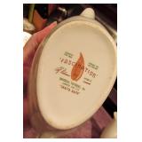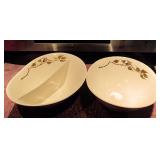 Universal Potteries Inc - Cambridge Ohio USA - Fascination - Wood-Hyacinth - Platter - 1-1/2"H x 12"L x 11"W - no chips, nicks, cracks or crazing; Serving Bowl - 3"H x 9-1/4"L x 8-3/8"W - no nicks, cracks or crazing - does have an age chip on the inside rim on the bottom and can not be seen - see photo. |