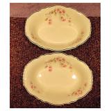 Two Matching Homer Laughlin - Virginia Rose Made in U.S.A. H46N8 - JJ 59. Measures: 2"H x 9-1/4"L x 6-3/4"W. Condition - has been used - No crazing - does have some old chips on both. No cracks. |