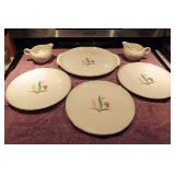 Universal Potteries Inc - Alpine - Fascination - Three Bowls - 2-1/8"H x 6-7/8"L x 6-3/4"W - Some crazing on the bottoms - No Chips, Nicks, Or Cracks. Bread and Butter plates - 6-1/2"Dia. No chips, nicks or cracks - two does have a little crazing. |