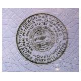 Biecentennial 1776-1976 - Advertisement for First National Bank of Cambridge Your Good Neighbor Bank - a little wear on the gold trim edging - 10-1/4"Dia - NO DAMAGE - No chips, nicks, cracks or crazing; Spoon Rest - and Wall Decoration also - Un-marked - 3/4"H x 8-1/8"L x 5"W - one manufacture flaw and four or five small nicks; Large Ashtray - USA - Does have some chips - see photos - 1-1/8"H x 14-1/2"L x 7-1/4"W. |