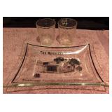 Advertisement Coin Dish - The Byesville Office - Cambridge Savings and Loan Association - 1"H x 6-1/8"L x 4-5/8"W - NO DAMAGE found; Two Shot Glasses - 2-1/8"H x 1-3/4"Dia at top - NO DAMAGE found. |