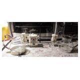 These Kitchen Items all have some type of damage on them also - most would be great for re-purposing. Bowls, Plates, Creamer, Lids, Dresser Glass Jar, Juicer, candle holder. |