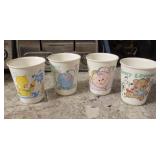 Four Kid's Cups - Fun designs and nice sturdy Plastic cups - 3-1/2"H x 2-7/8"Dia. All are in very good condition. |